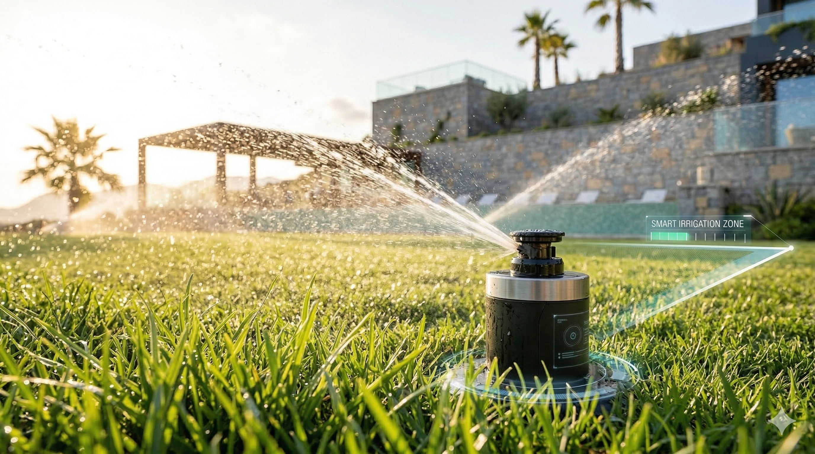 En el clima español, el agua es oro. Instalamos sistemas de riego sectorizados con electroválvulas inteligentes que ajustan el caudal según la humedad del suelo y la previsión meteorológica.